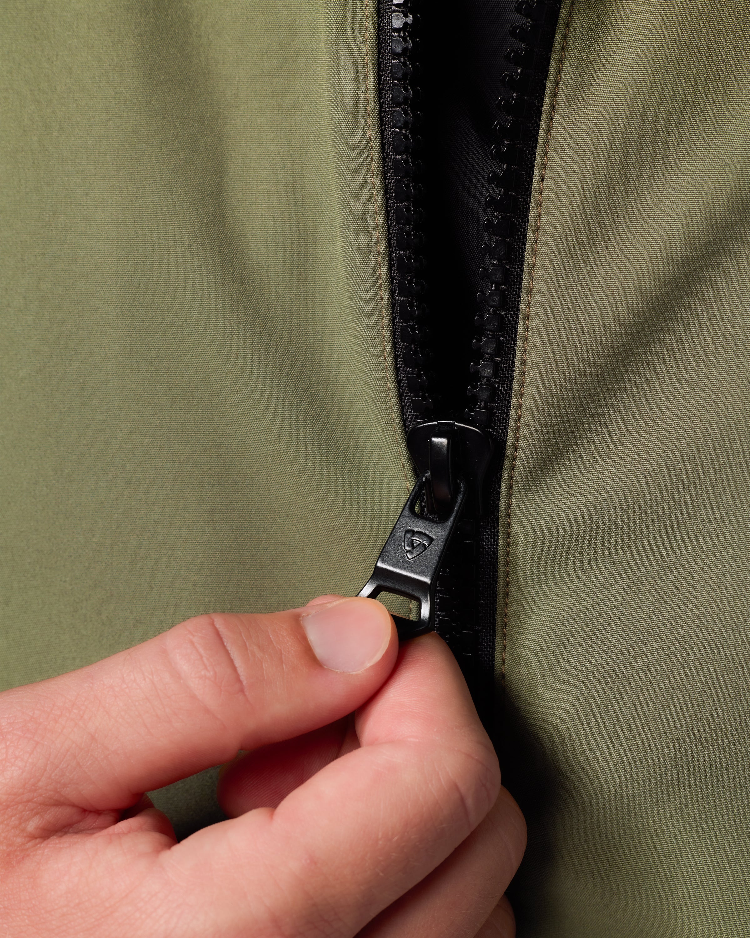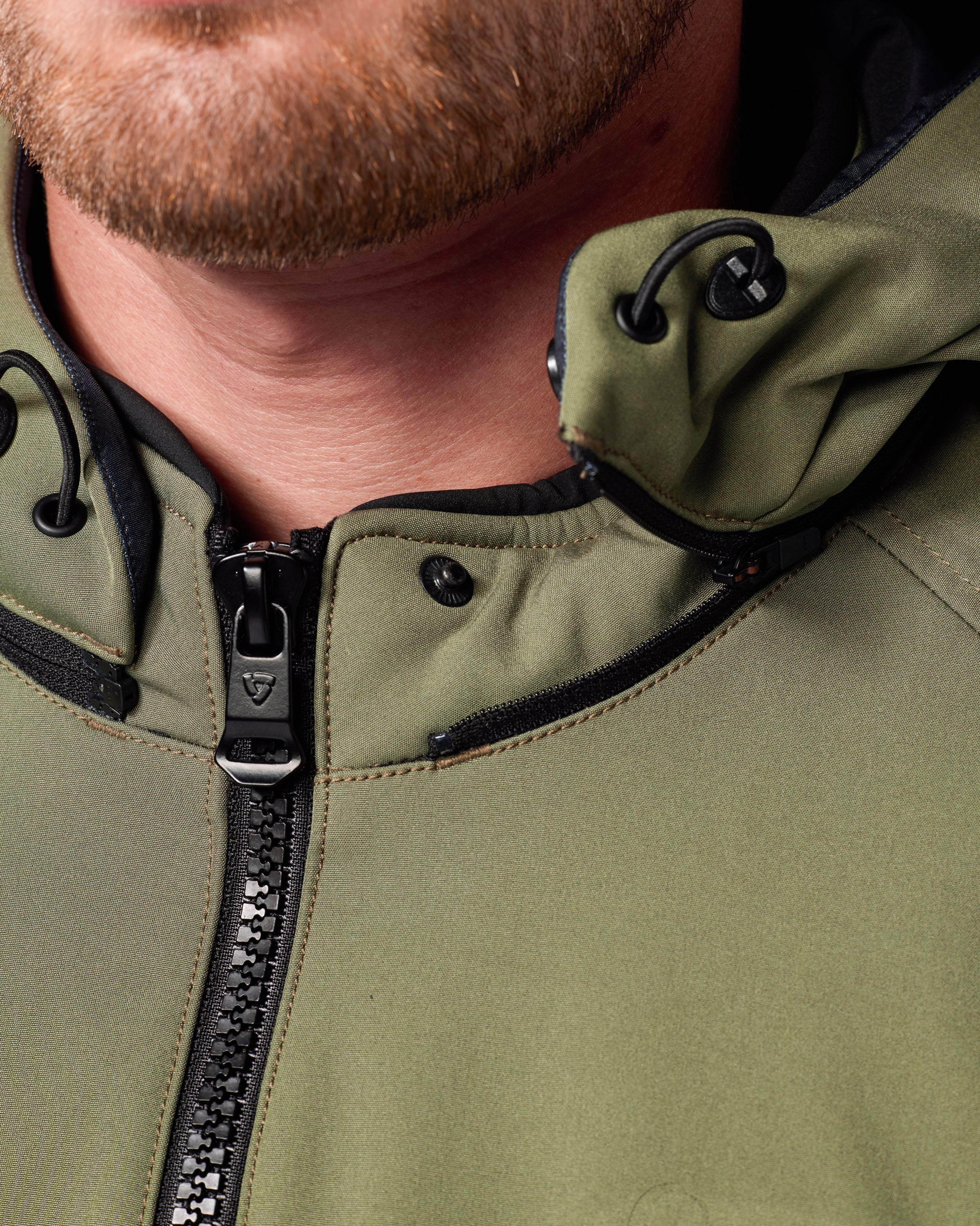 The zip-on hood can be easily removed from the jacket.
