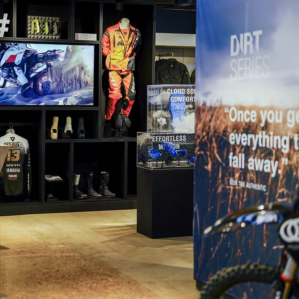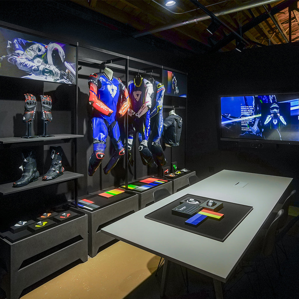 Split up into various zones, the store allows guests to experience the wide range of REV'IT! collections. From adventure through urban to race, and from accessible essentials to tailormade professional level one-piece suits. However, to say that the REV’IT! Denver experience is defined by our collection alone, would be an injustice.