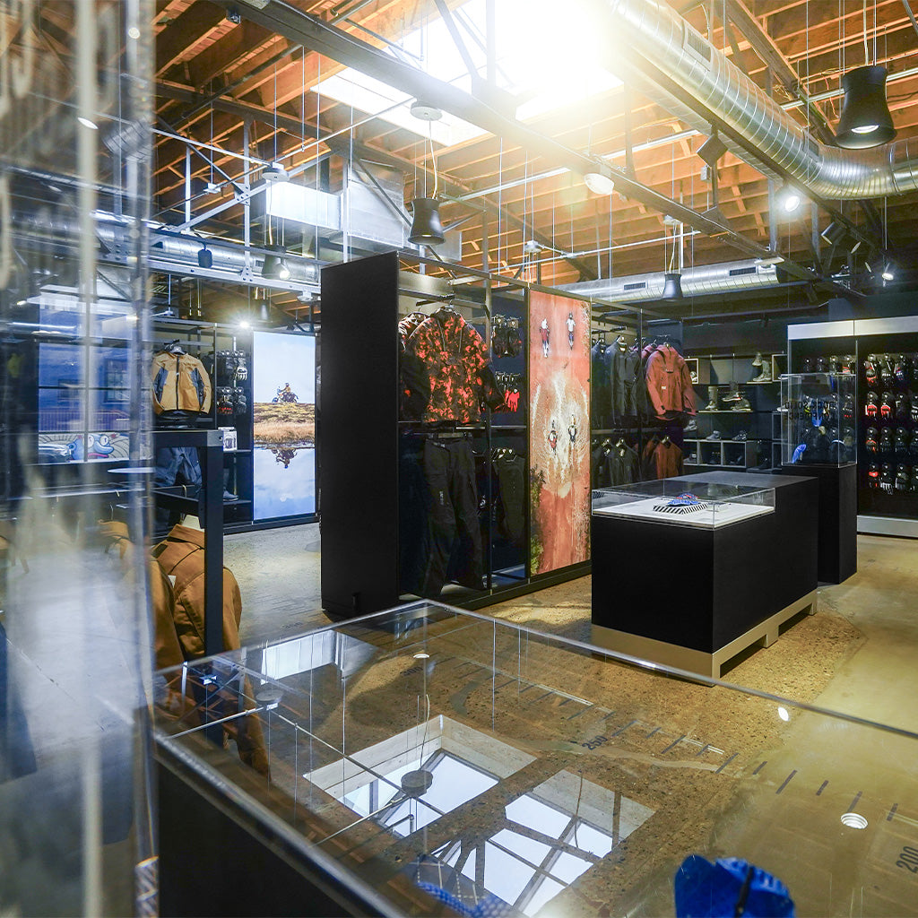 From the materialization to the flexible set up and welcoming community area, REV’IT! Denver is a motorcycle gear store the likes of which has not been seen before. It’s a symphony of innovative design in aluminum and concrete with local elements such as the original timber beams. From floor to ceiling, it’s made to embody our pillars of Performance, Design, and Innovation.