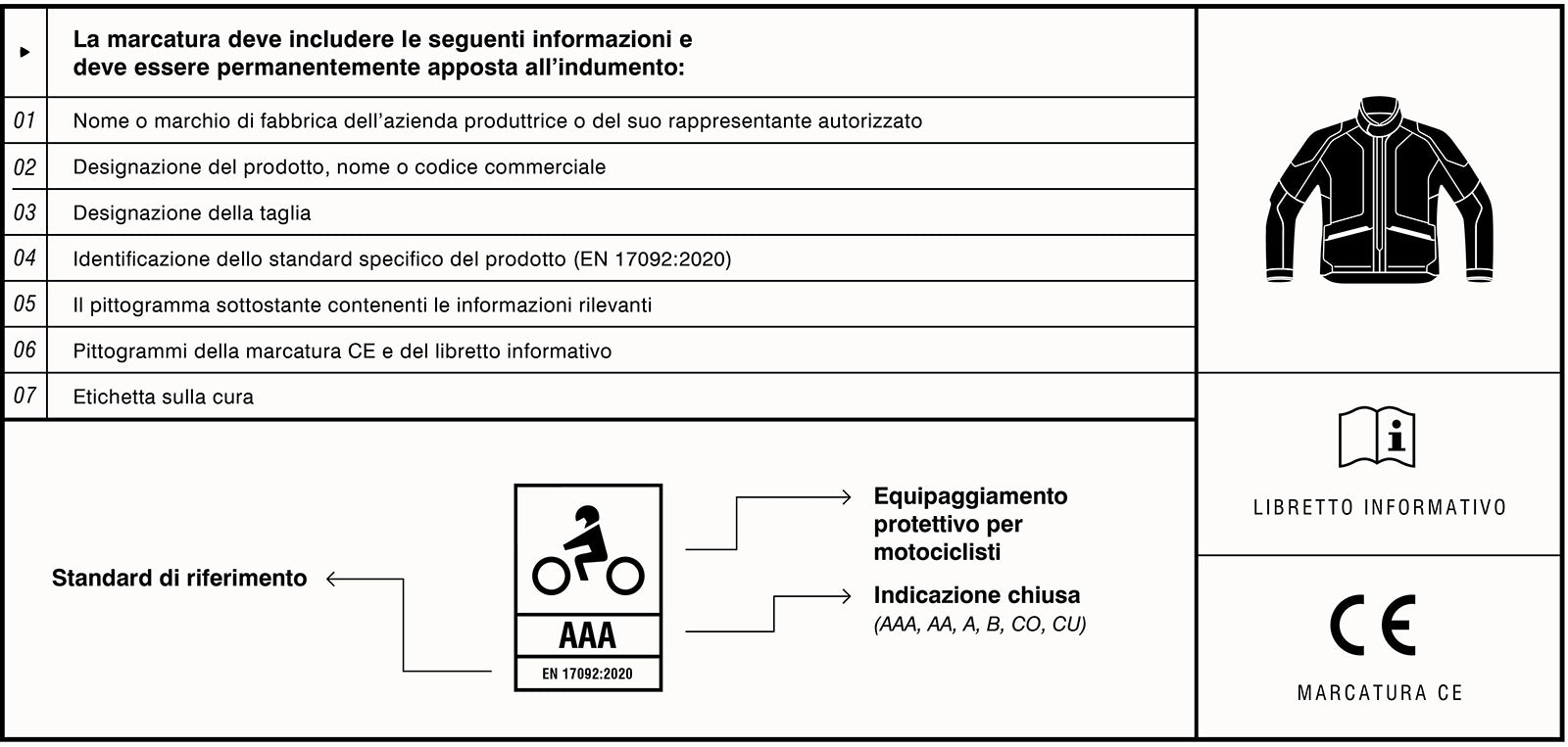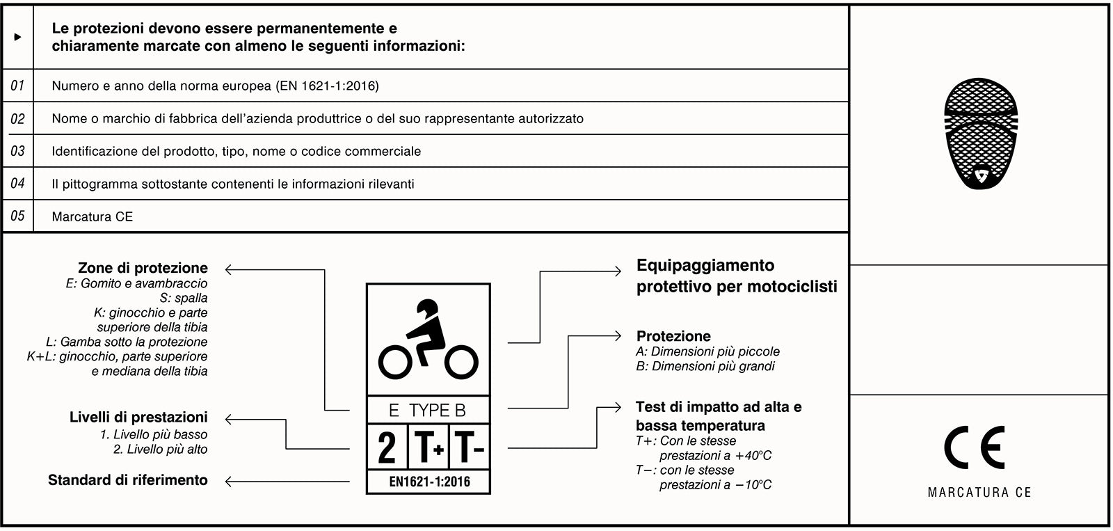 Per l’abbigliamento motociclistico abbiamo varie categorie di certificazione: