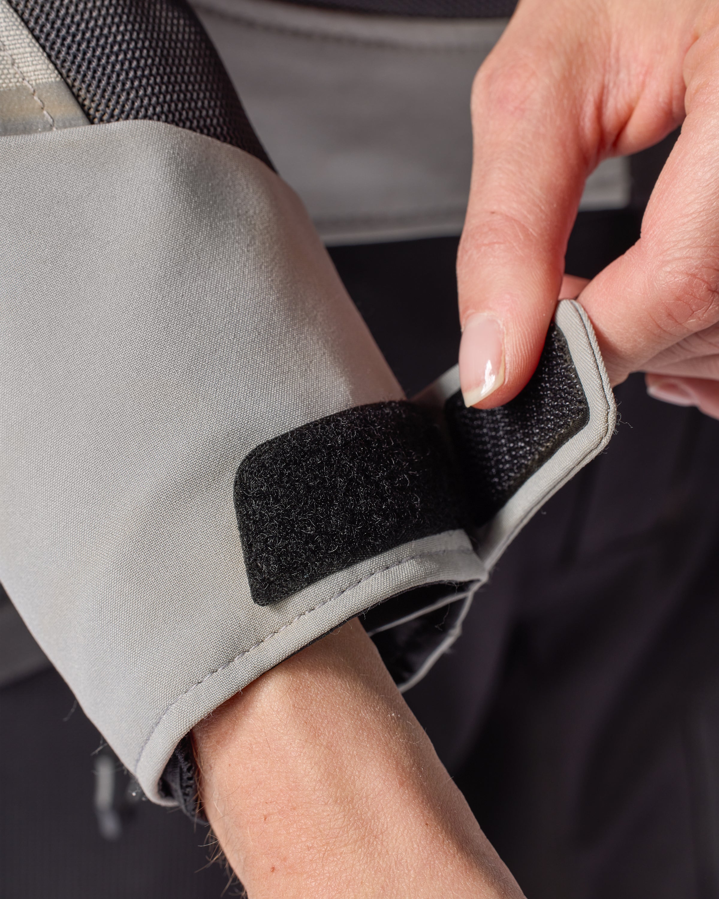 Il flexisnap di REV’IT! rende possibile la regolazione della circonferenza collo in maniera facile, personalizzando la vestibilità per ogni motociclista. Una giacca è spesso usata per più di una stagione ed il flexisnap rende possibile la regolazione del colletto in pochi secondi. Durante l’inverno una circonferenza collo più ampia rende possibile l’uso della giacca assieme a un passamontagna o a uno scaldacolo, mentre durante l’estate una circonferenza maggiore permette un afflusso d’aria importante attraverso il colletto.
